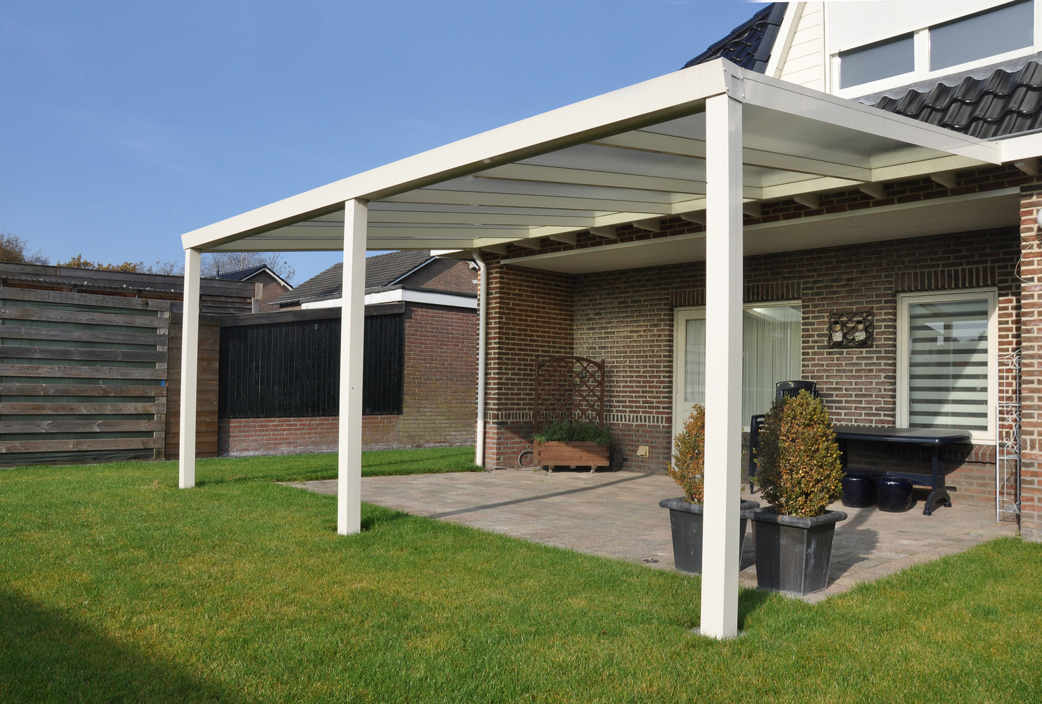 • -Standaard aluminiumafdekprofielen zowel boven als op zijkant van veranda